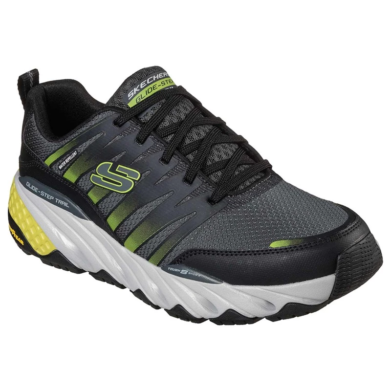 Blaze through the trails in surefooted comfort with Glide-Step Trail. This lace-up casual trail design features a leather and synthetic upper with a Air-Cooled Memory Foam; comfort insole, Glide-Step; geometric cushioned midsole and a durable Goodyear; outsole.