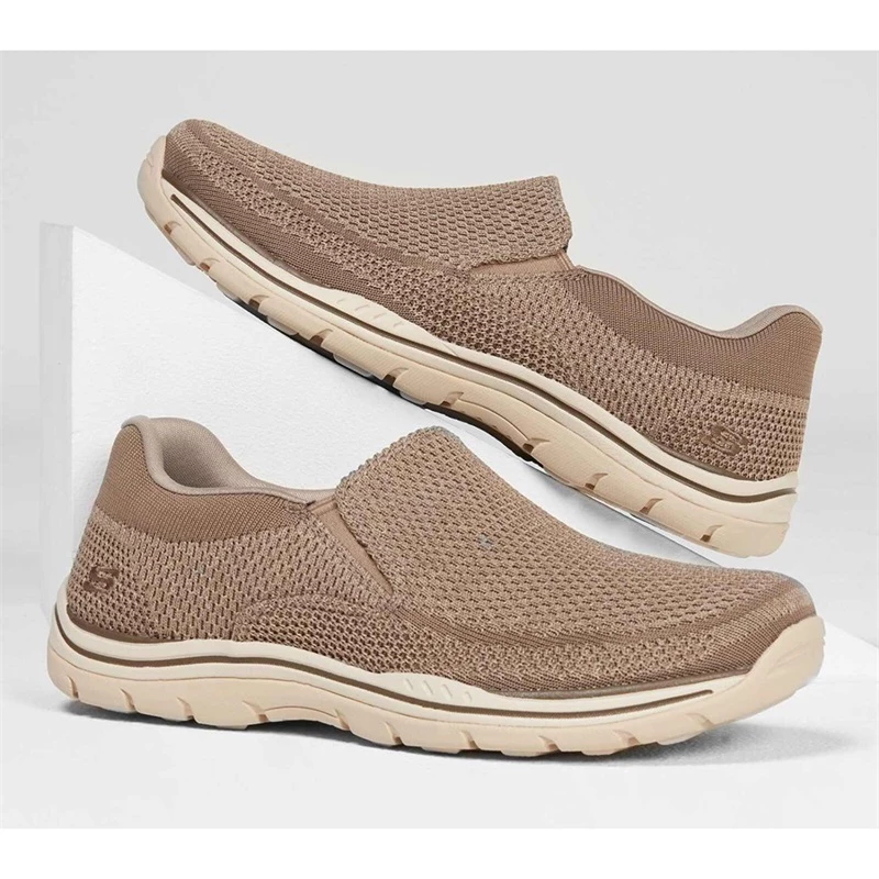 The best of sport and casual style mesh in Relaxed Fit; Expected – Gomel. Skech-Knit mesh fabric upper in a slip-on casual comfort moc toe loafer with knit accents. Memory Foam insole.