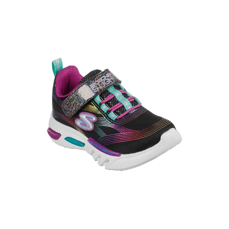Make your day bright with every step in S Lights: Glow-Brites. This bungee-laced slip-on light-up design features a mesh upper with metallic rainbow trim and a light-up midsole.